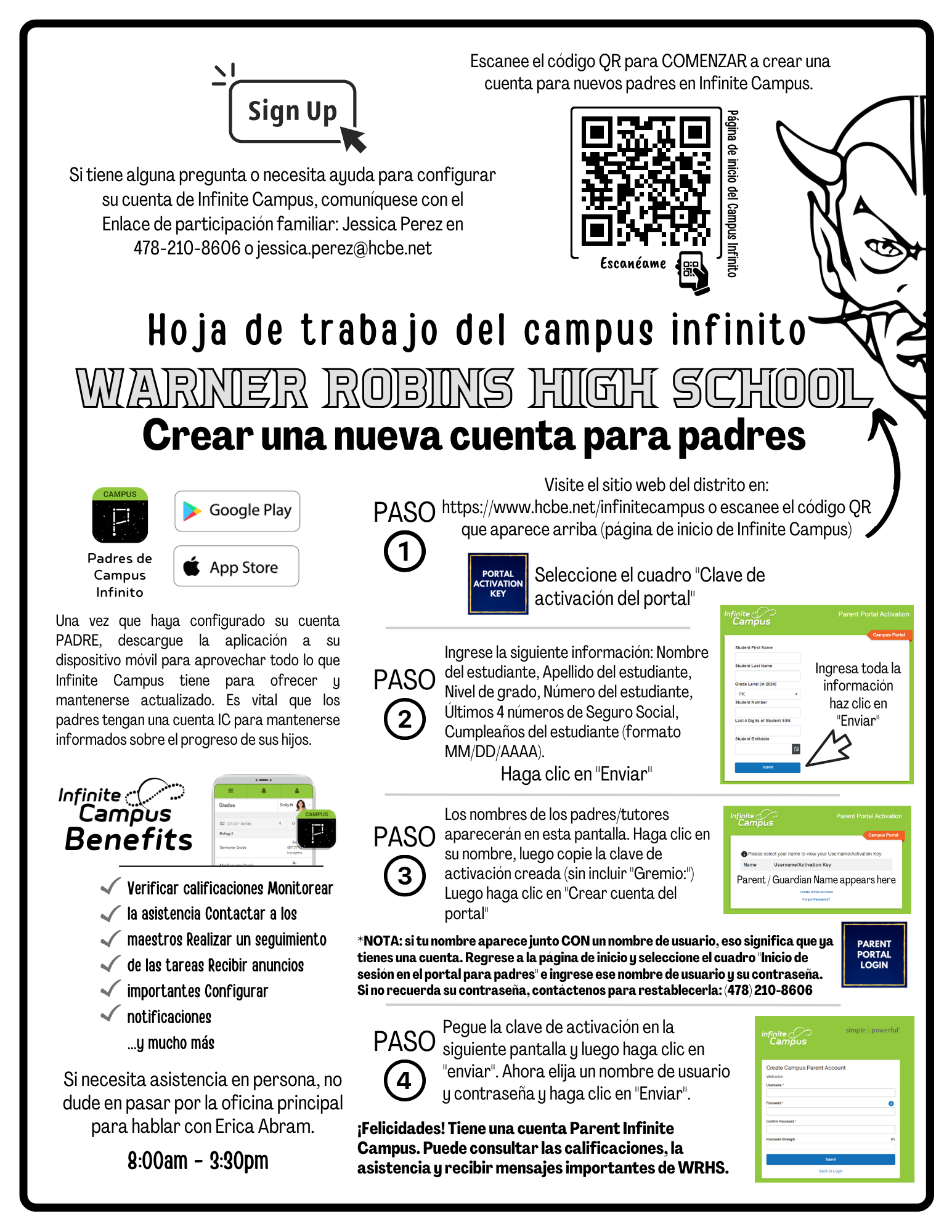 Warner Robins High hosts activities throughout the year to build strong family engagement which supports a partnership among the school, families and the community to improve student academic achievement. We believe that family engagement is the participation of families in all areas of their children’s education and development, recognizing that families are the primary influence in their children’s lives. Check the school's social media pages, the school sign, newsletters and call-outs for the most current information on school events.